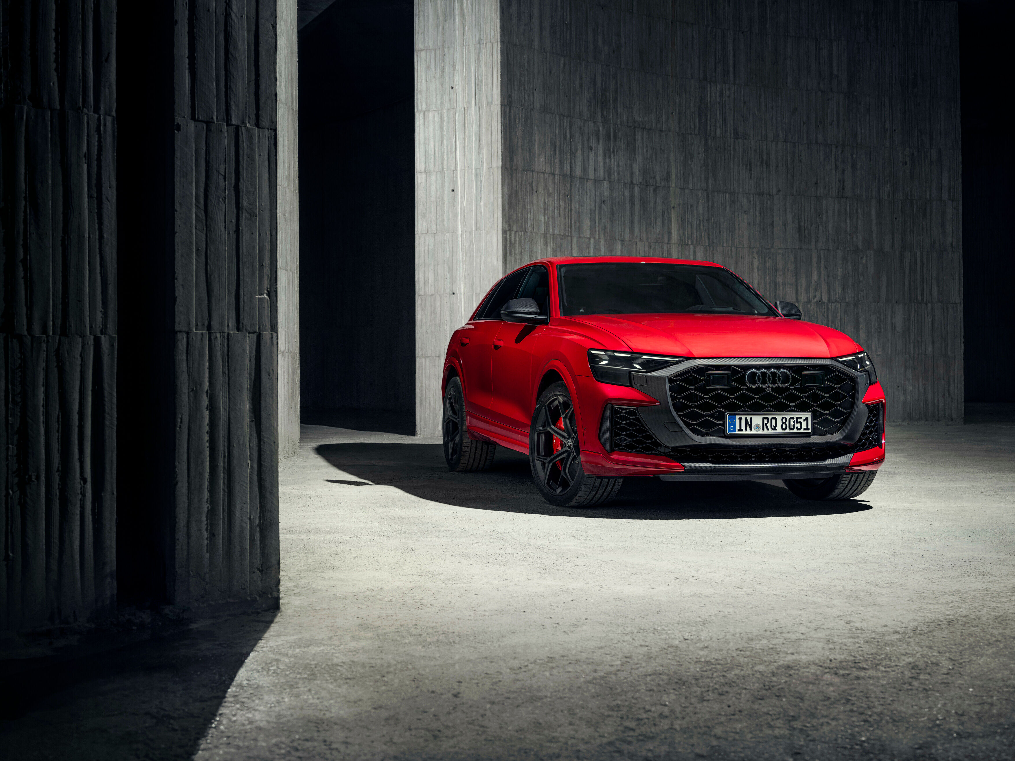 De Audi RS Q8 performance is uitgerust met een V8 biturbomotor die 471 kW/640 pk levert en een koppel van 850 Nm genereert. Hiermee is de RS Q8 het meest krachtige model met verbrandingsmotor dat Audi Sport ooit heeft geproduceerd. In slechts 3,6 seconden is de sprint van 0 naar 100 km/h voltooid. De topsnelheid bedraagt 250 km/u, maar kan optioneel worden verhoogd naar 305 km/u. Het speciaal ontwikkelde lichtgewicht uitlaatsysteem, met glanzende zwarte uitlaatpijpen, draagt niet alleen bij aan de indrukwekkende prestaties, maar zorgt ook voor een intense geluidservaring.