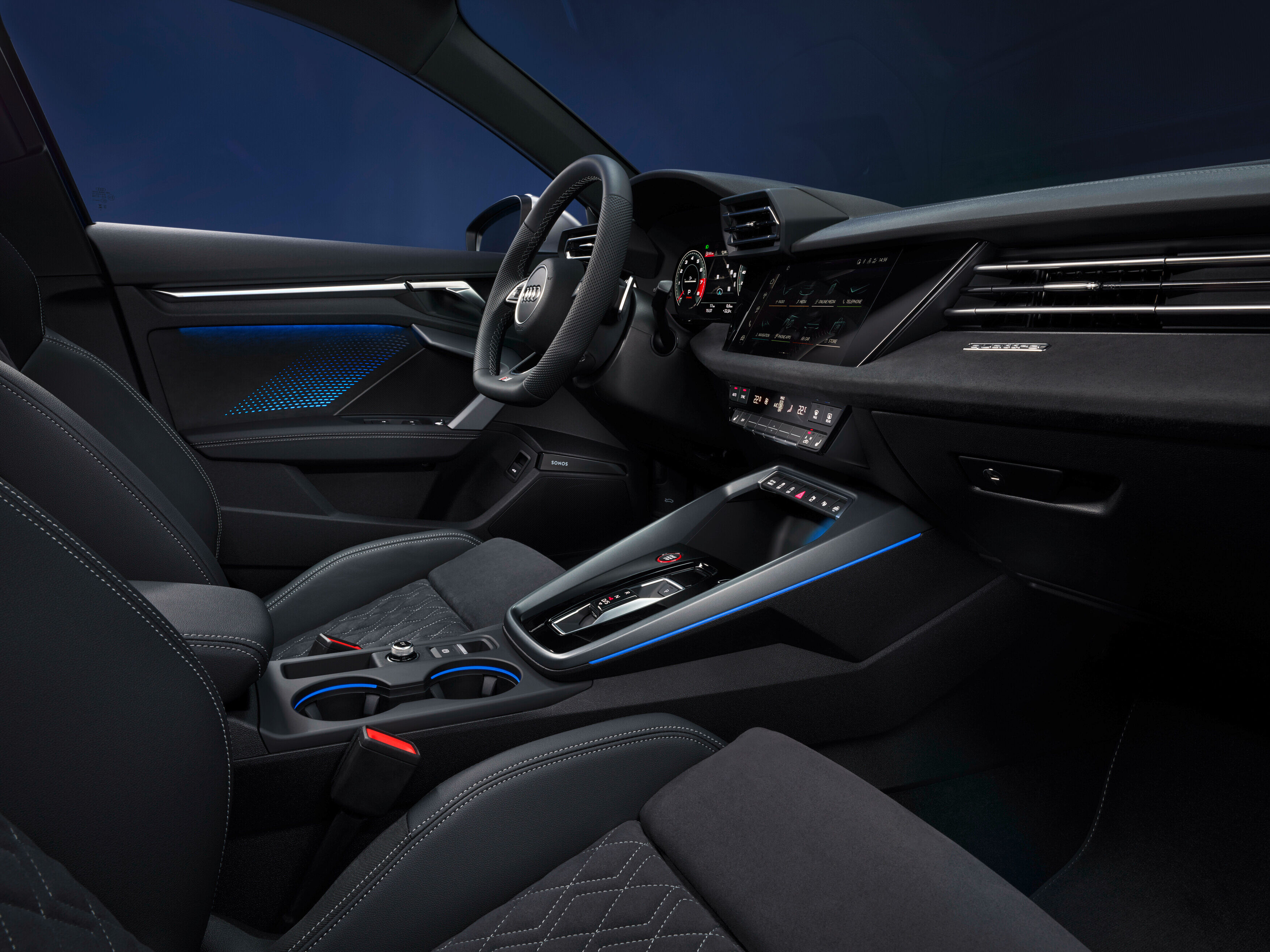 De nieuwe Audi S3 Limousine en Sportback modellen zijn standaard luxe en sportief uitgerust. De LED Matrix-koplampen maken het mogelijk om te kiezen uit verschillende dagrijverlichtingssignaturen. In de auto ben je altijd digitaal connected dankzij het virtual cockpit plus en het 10,1 inch centrale touchscreen. In het S line interieur vallen de sportstoelen met geïntegreerde hoofdsteunen op. Ook aanwezig zijn de automatische airconditioning (2 zones), Audi connect Navigatie & Inforainment plus en het Audi Sound system. Dankzij verschillende opties en pakketten is het mogelijk om de Audi S3 naar eigen smaak samen te stellen.