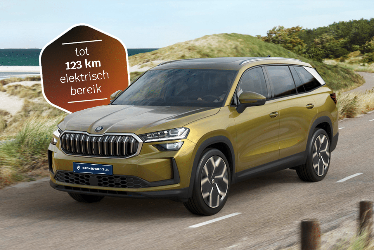 De Škoda Kodiaq is de enige plug-in hybride SUV die het merk levert. Binnenin de Kodiaq geniet je van de enorme ruimte en het gebruiksgemak dankzij de Smart Dials. De bediening van de DSG-transmissie is verplaatst naar de stuurkolom waardoor de middenconsole nu nog meer opbergruimte heeft. Met zijn vermogen van 204 pk en een elektrisch rijbereik tot 123 kilometer biedt deze variant een combinatie tussen prestaties en een gunstig verbruik.