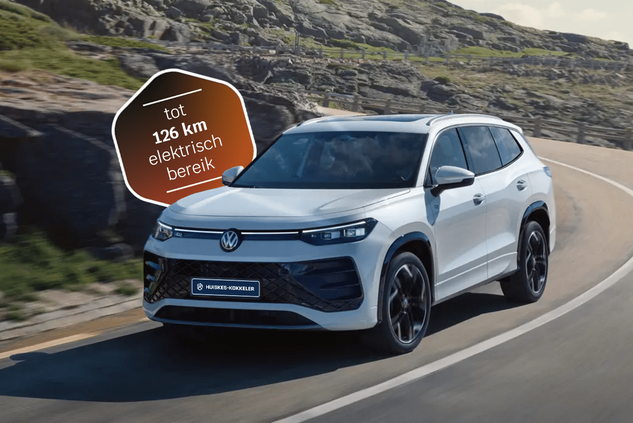 De Volkswagen Tayron is een ruime en veelzijdige SUV die zowel als mild-hybride als plug-in hybride verkrijgbaar is. De plug-in hybride variant heeft een batterij van 19,7 kWh, goed voor een elektrische actieradius tot 126 kilometer. Naast de efficiënte aandrijving biedt de Tayron veel ruimte. Met vijf passagiers aan boord is er een bagageruimte van maximaal 885 liter en optioneel is er een derde zitrij beschikbaar, waardoor er plaats is voor zeven personen. Hiermee is de Tayron een praktische keuze voor gezinnen en lange ritten.