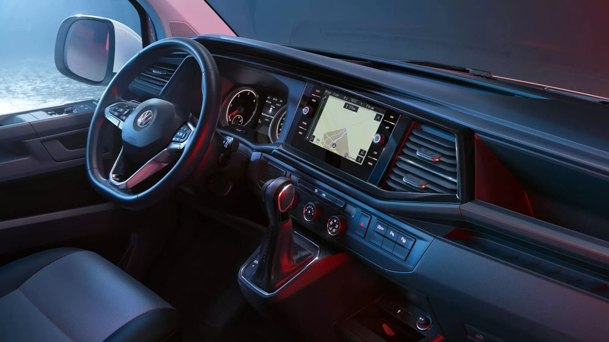 De nieuwe Transporter tilt het comfort in de cabine naar een nog hoger niveau. Het volledig nieuwe dashboard heeft nog meer opbergruimtes en is te voorzien van een naar wens in te stellen ‘Digital Cockpit’. Ook nieuw zijn een 230V stopcontact bij de bestuurdersstoel en een afsluitbaar vak in de tweezitsbank aan bijrijderszijde. Er is nu ook een laadmogelijkheid voor extra lange goederen; deze kunnen nu tot onder de tweezitsbank aan bijrijderszijde worden geschoven.